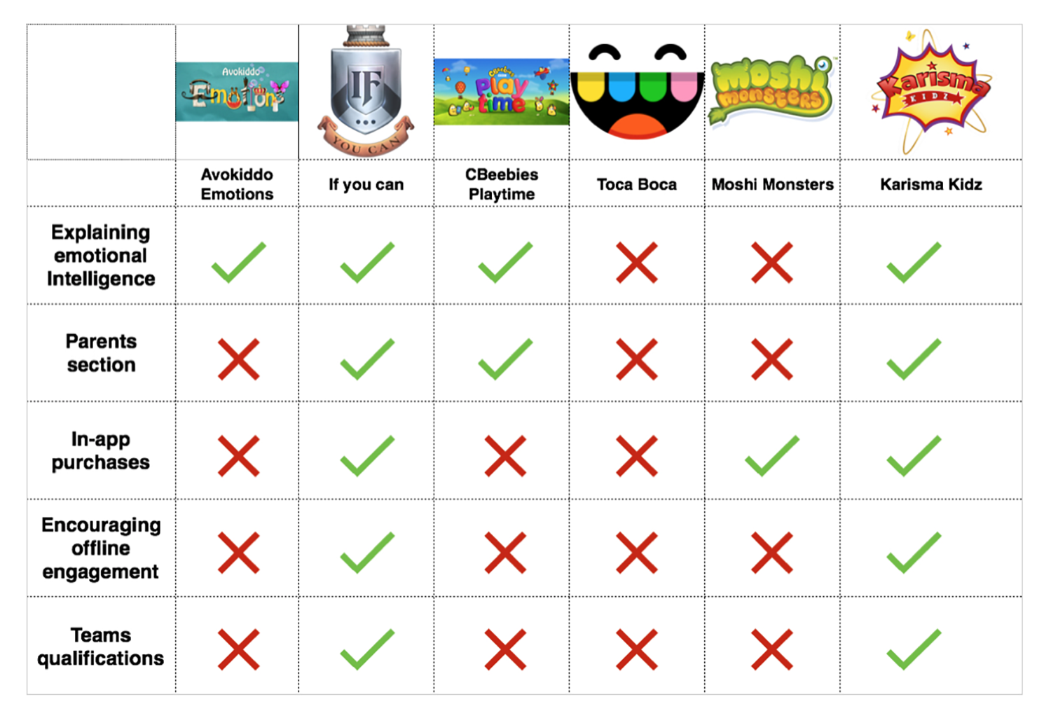 Within the market, many of the apps that were suggested to us in the client interview, such as Avokiddo, Toca Boca and Moshi Monsters, did not have many of the features that our client was championing and seeing as her unique selling points. Not many of the very successful games, charged in-app purchases, contrary to our client’s business model