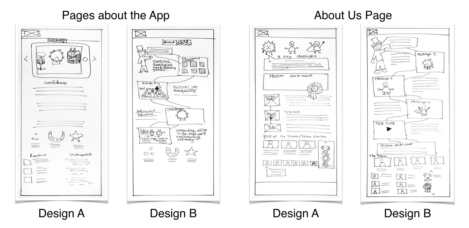 From the A/B testing we learnt that users found that the more formal designs for the main page and ‘about us’ pages were more appropriate, as those are the pages which they expected to be more authoritative, whereby they were expecting key information on the app and people behind it, such as child psychologists and educational experts