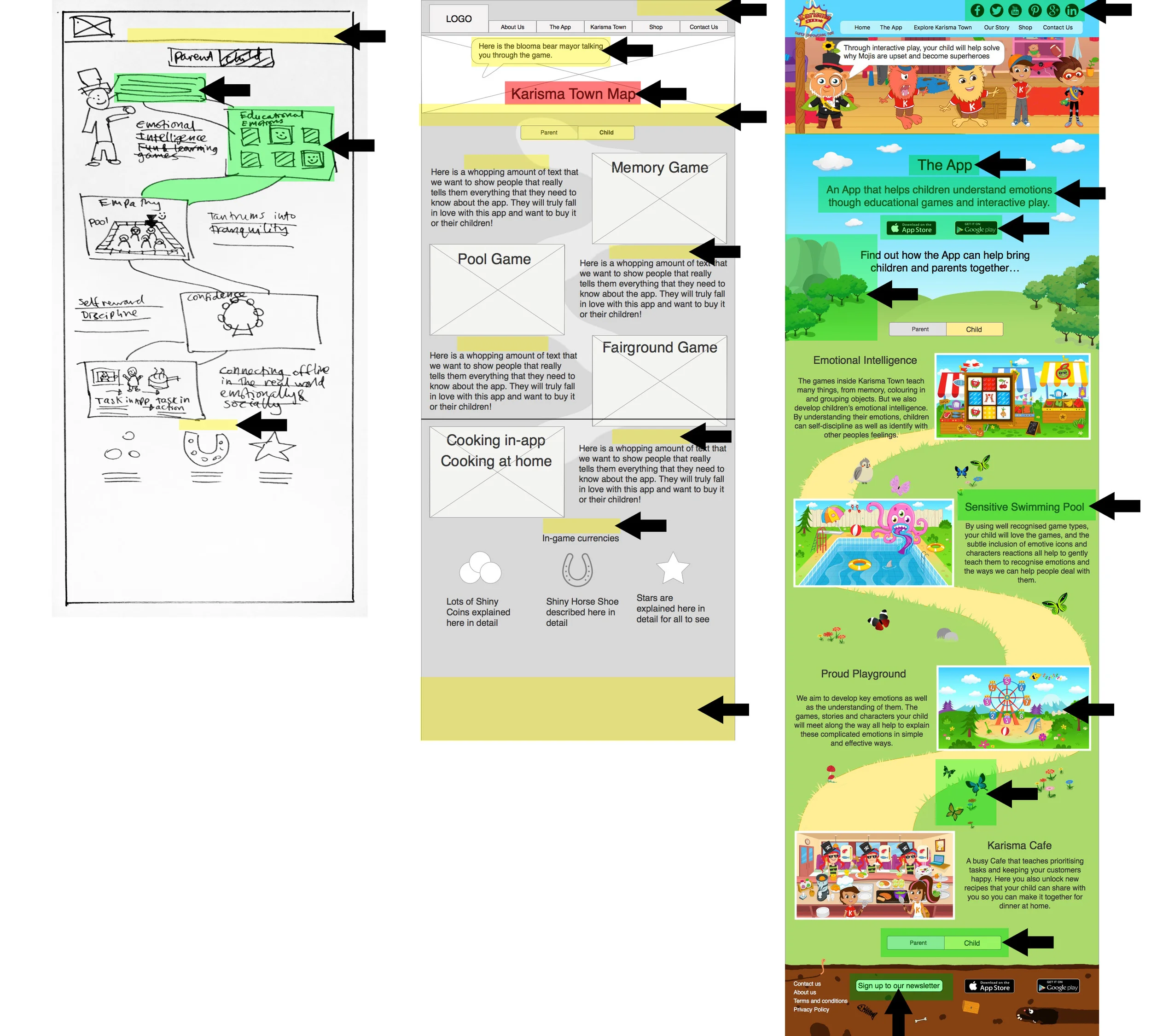 To entirely re-design the Karisma Kidz website, to reflect the app that was due for imminent launch on the Apple Store. The key focus of which should be to champion the app's features to parents considering downloading it for their children.