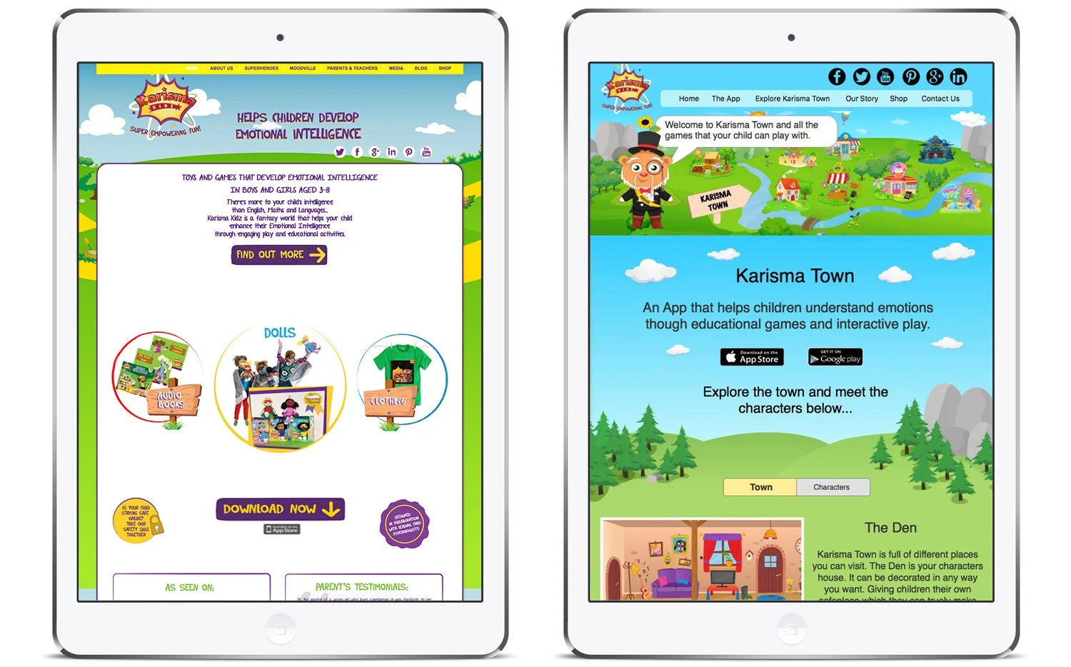 From a 'Blue Skies' brief, we were able to entirely redesign the Karisma Kidz website to reflect the app, in just two-and-a-half weeks. Our client was so impressed by the new site design, she asked us for the assets to be delivered within a few days, so that her web designer could begin work re-creating what we had produced immediately.